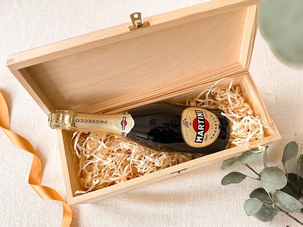 Darčekové balenie v drevenej krabičke ponúka dokonalú kombináciu šumivého Martini a originálneho darčeka na mieru. Poteší nielen milovníkov a znalcov dobrého pitia. Je ideálnym darčekom k narodeninám, k narodeniu dieťaťa, radosť urobí novomanželom, ale aj obchodným partnerom.
