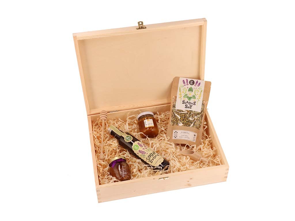 Bylinné čaje, medy aj sirupy - to je sila prírody v každom dúšku. Naše darčekové balenie v drevenej krabičke sa postará o regeneráciu unavenej mysle aj navodenie dobrej nálady, a to je to najcennejšie, čo môžete darovať.