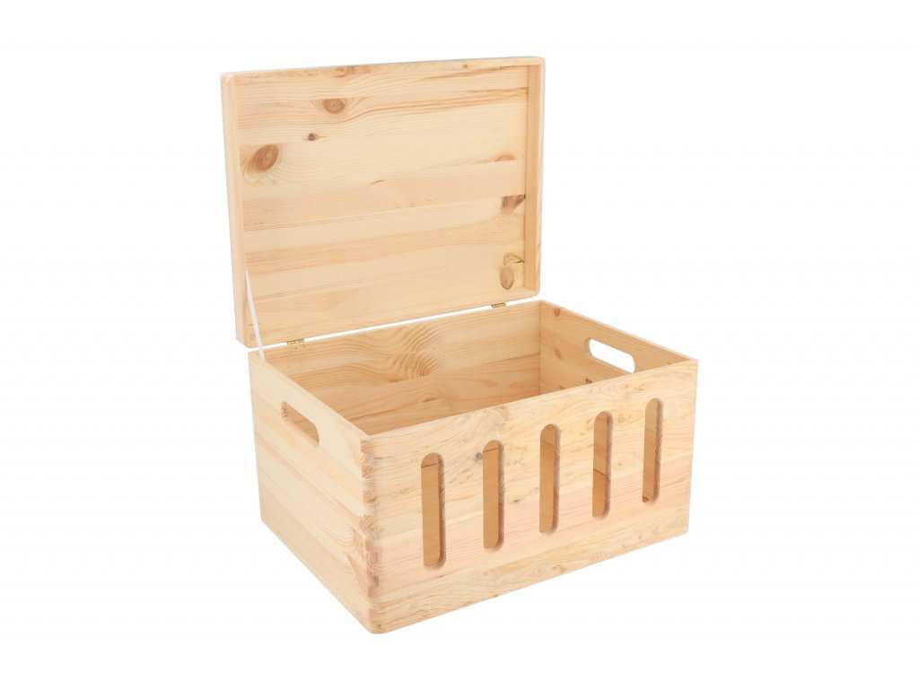 Drevený box s výrezmi a viekom 40 x 30 x 23 cm