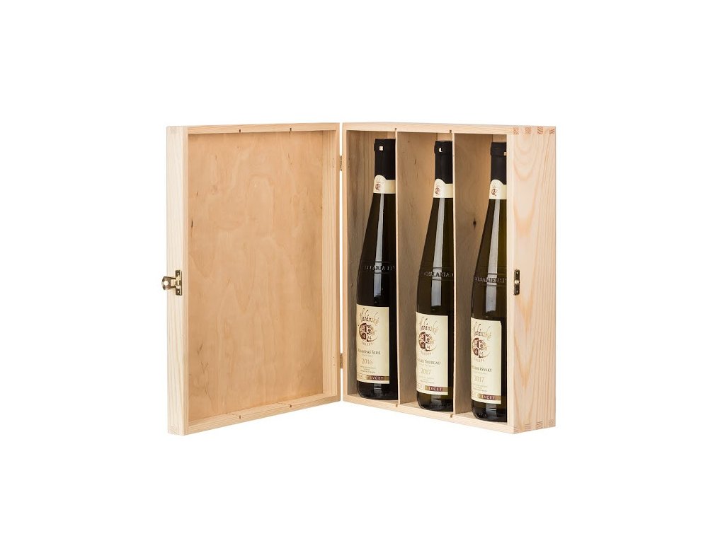 Drevená krabička na 3 vína XII